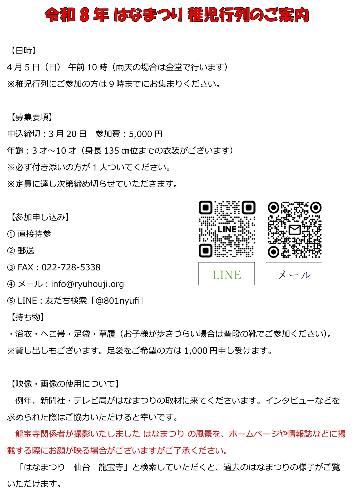 龍宝寺のはなまつりの様子はこちらからご覧いただけます。